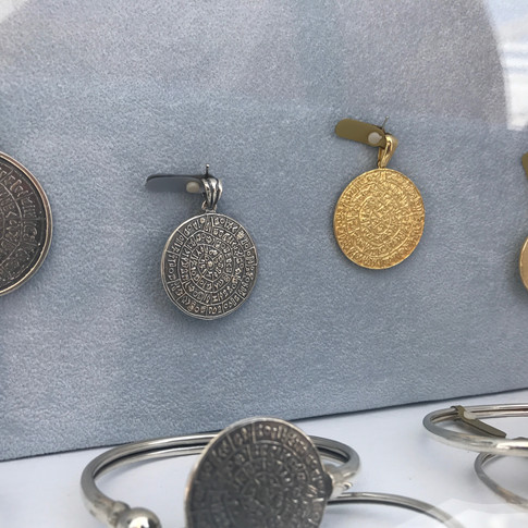 The unique Greek Phaistos disk represented in trendy and stylish jewelry.
